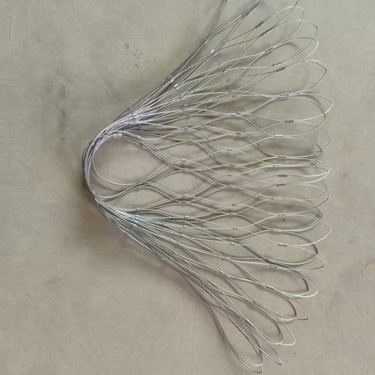 2. フェルールメッシュ: 結び目メッシュと同じ物理的特性を共有しますが、ステンレス鋼のワイヤーロープは、同じグレードのステンレス鋼で作られたフェルールによって組み合わされています。